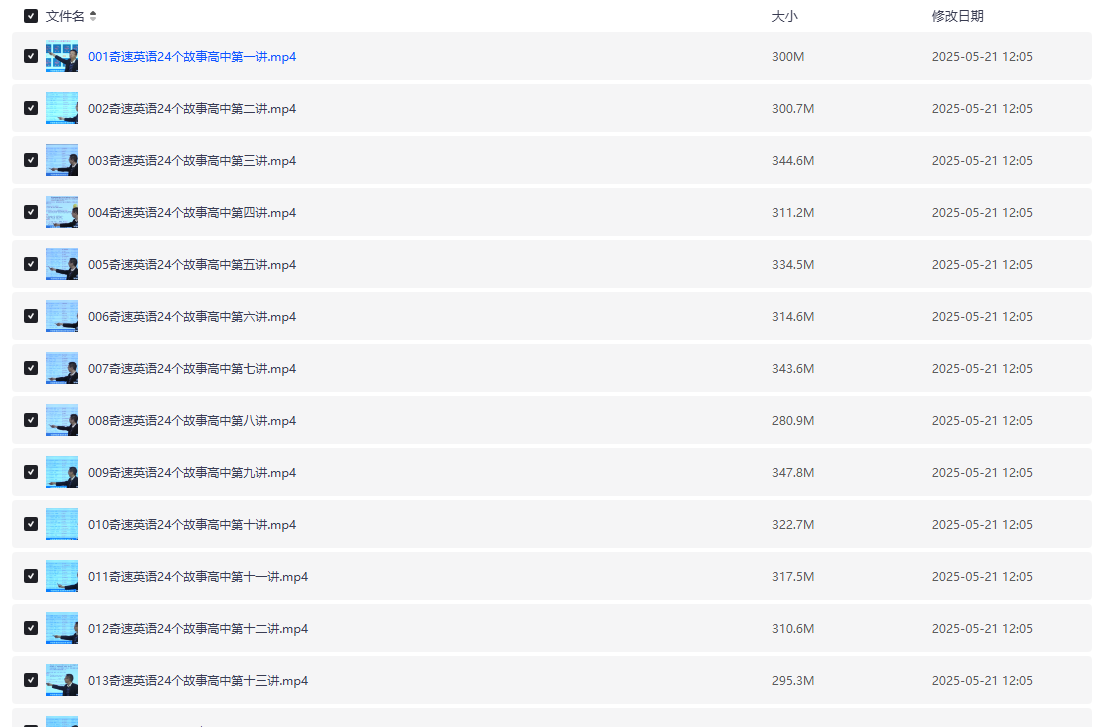 ├── 001奇速英语24个故事高中第一讲.mp4