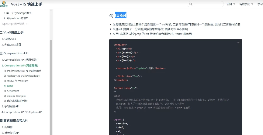 众所期待,尚硅谷新版Vue视频教程上架!基于Vue3.0版本讲解,对Vue3.0版本的新特性、Composition API、新组件及TypeScript进行了详尽的源码级讲解,授课图文并茂,资料详实丰富,带你领略不一样的技术风景线! 本套教程从Vue的好搭档TypeScript基础讲起,涵盖TypeScript的多种运行方式、基础类型、接口的使用、函数、泛型等,包括Vue3.0的新特性和新语法、Composition API常用部分和其他部分、自定义hook函数及手写Composition API、新组件(Fragment/Teleport/Suspense)、Vue3.0响应式数据原理的分析及实现、Vue3.0的综合案例等内容。
