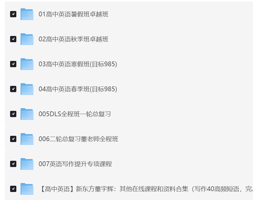 新东方董宇辉全套高中英语课程,阿里云盘和夸克网盘资源,免费下载。