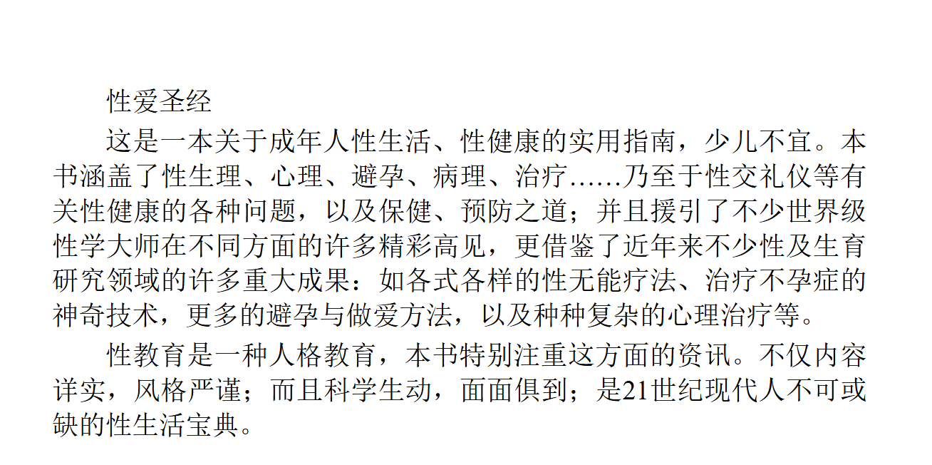 书中亮点在科学xing与实用性兼备——援引金赛研究所等权威数据,把xing心理拆解成可操作的沟通话术。更收录前沿技术:不yun症的新型疗法、延shi喷剂的成分解析,甚至食疗改善性欲低下的食谱。附录的128个误区辟谣堪称防坑指南,那些朋友圈流传的「壮yang偏方」在这里都被扒得底朝天。