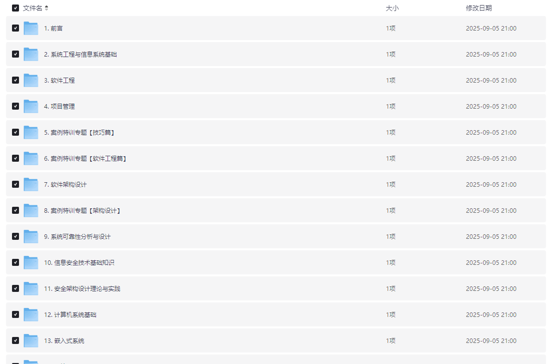 系统架构设计师精讲班视频教程,本课程以系统架构设计为核心,涵盖从基础理论到实战案例的完整体系。学员将系统学习软件工程、项目管理、计算机网络、数据库、信息安全与嵌入式系统等知识,并通过案例特训掌握架构设计的关键技巧。