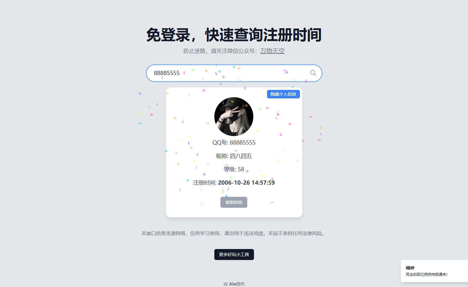 【查询 QQ 注册时间工具:qqbirthday】